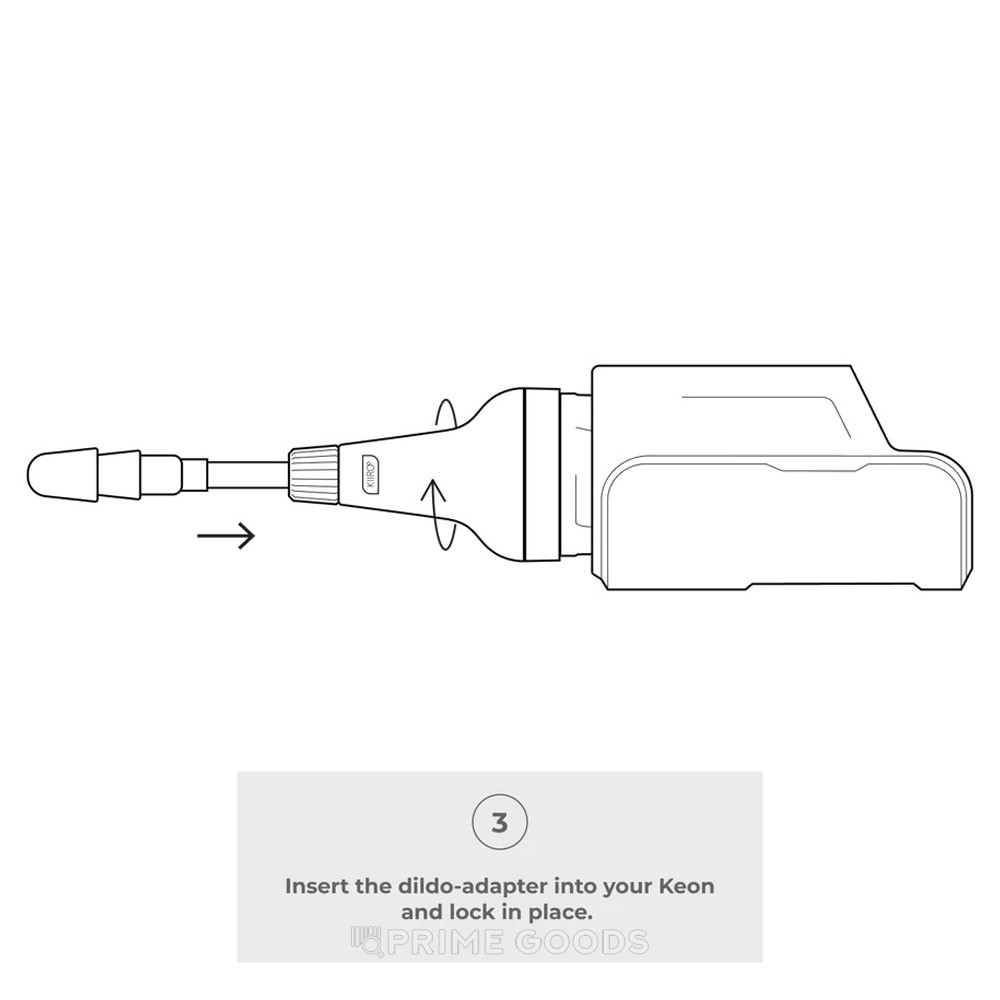 Установите адаптер на Keon согласно инструкции производителя, затем вставьте фаллоимитатор и зафиксируйте его вакуумным зажимом. Включите Keon и выберите нужный режим работы.