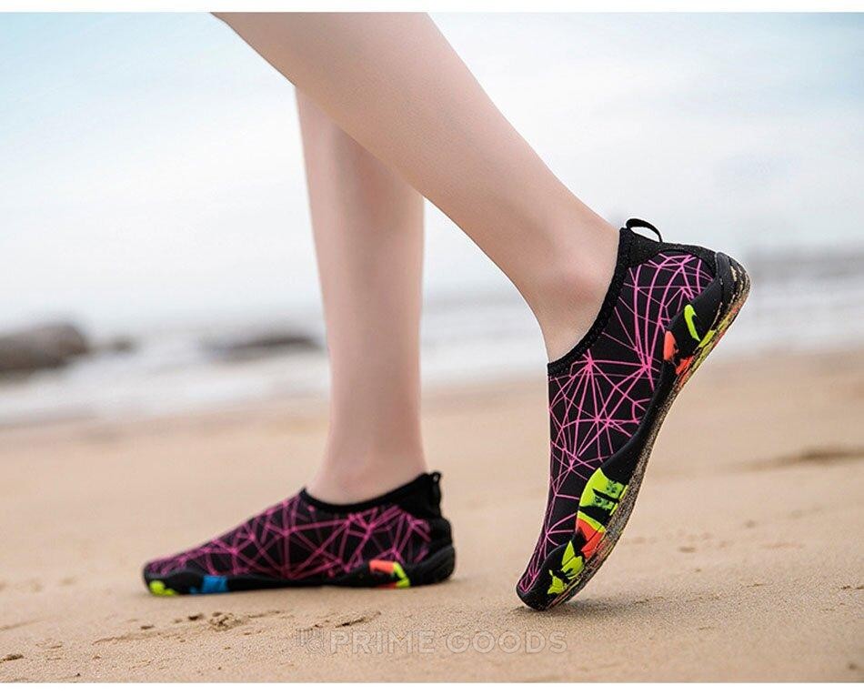 Аквашузы Pink line - геометрический розовый принт смотрится стильно и со вкусом. Вам остается только дополнить пляжный образ эффектным верхом.