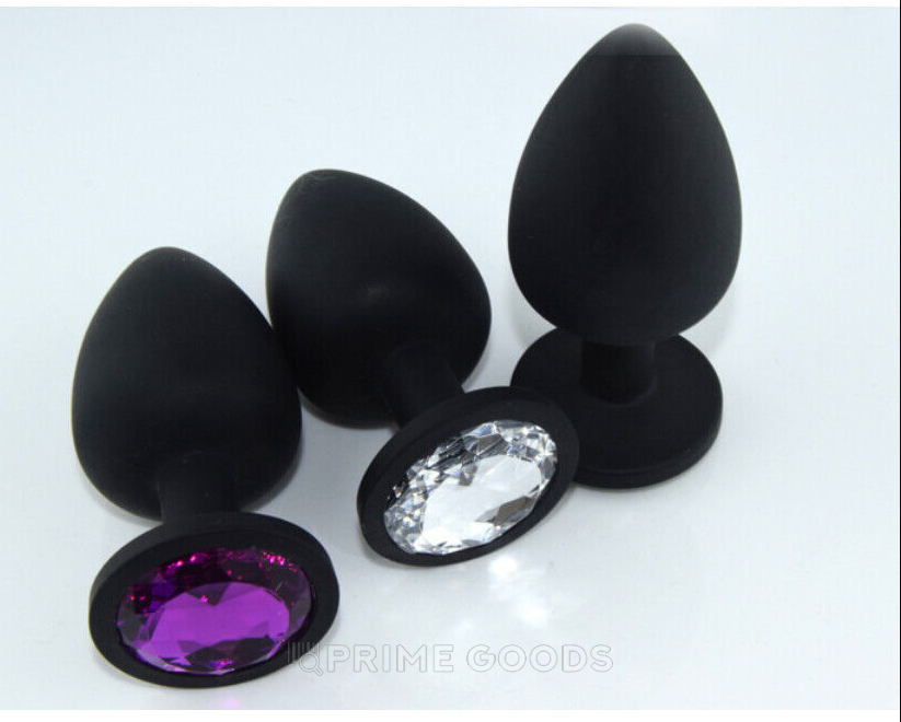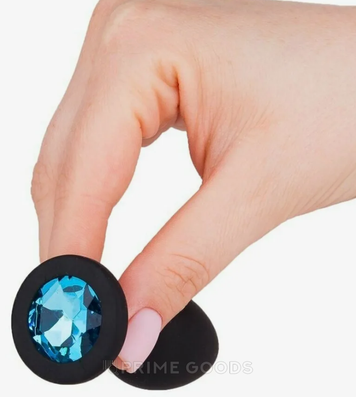 Анальная пробка из чёрного силикона с голубым кристаллом