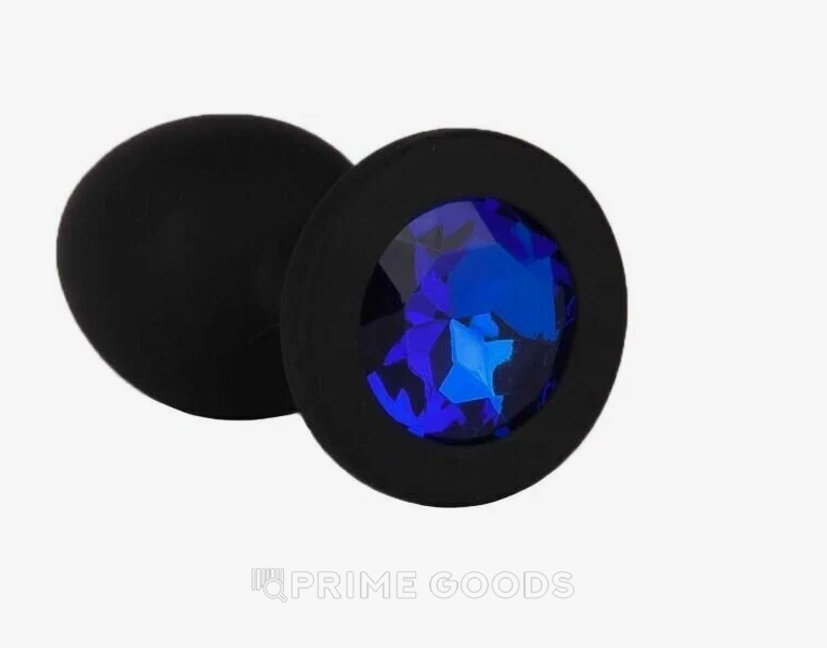 Анальная пробка из чёрного силикона с синим кристаллом (размер S)
