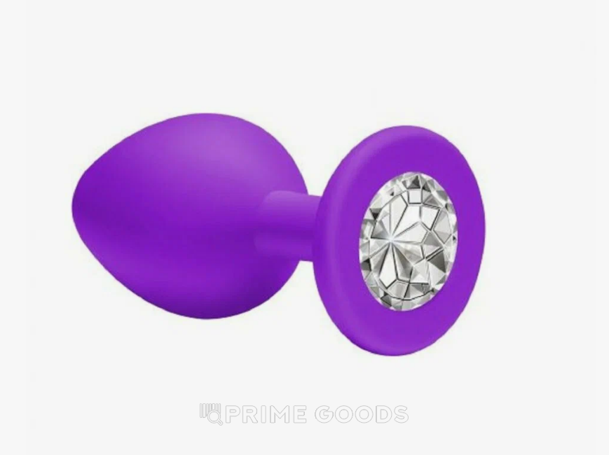 Анальная пробка из фиолетового силикона с белым кристаллом