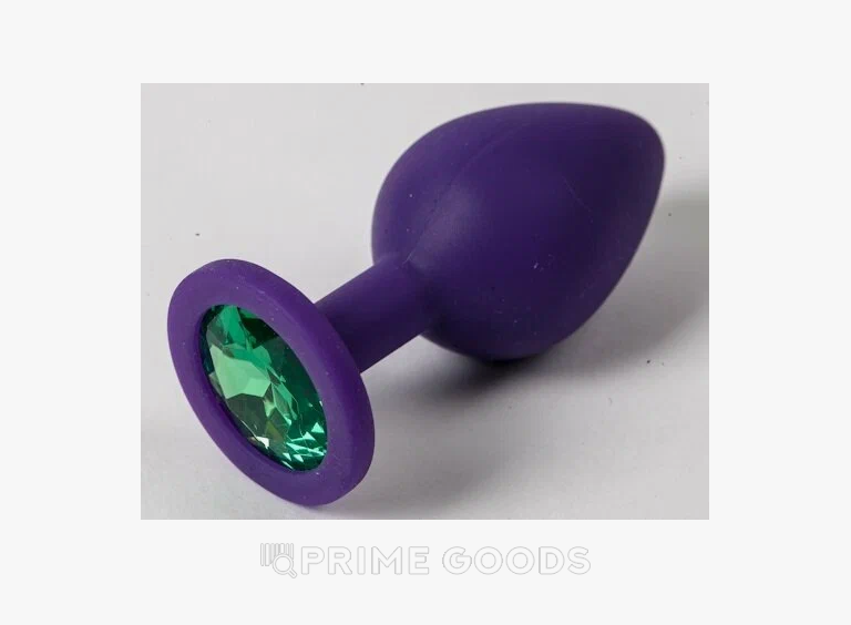 Анальная пробка из фиолетового силикона с бирюзовым кристаллом (размер S)