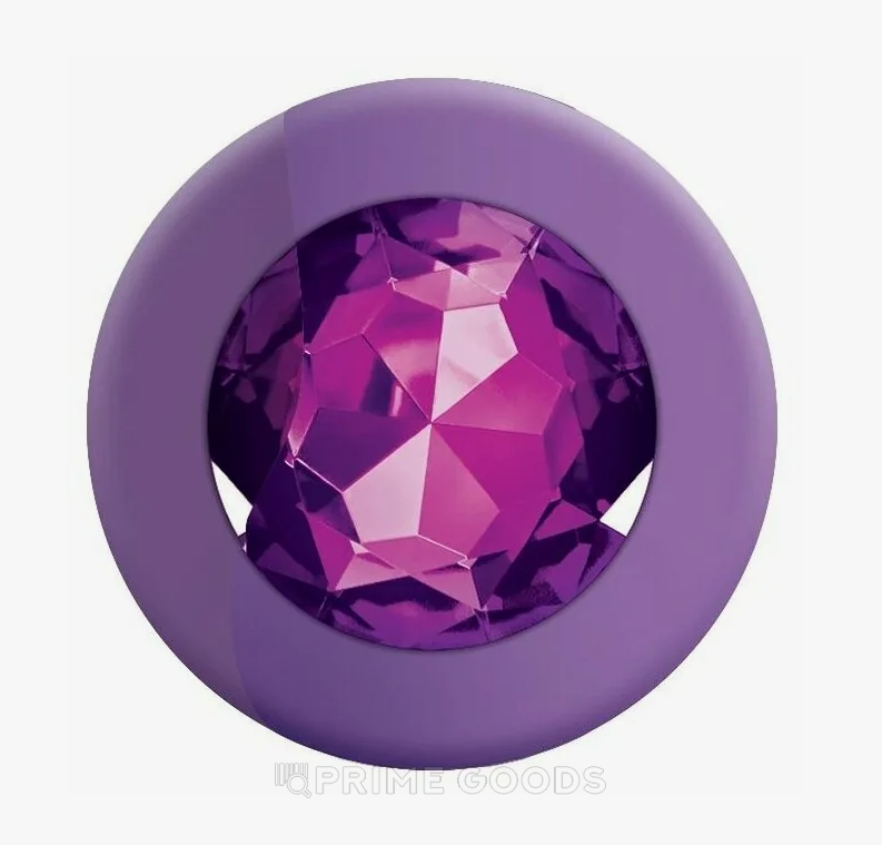 Анальная пробка из фиолетового силикона с розовым кристаллом (размер S)