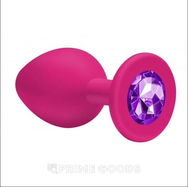 Анальная пробка из розового силикона с фиолетовым кристаллом (размер S)