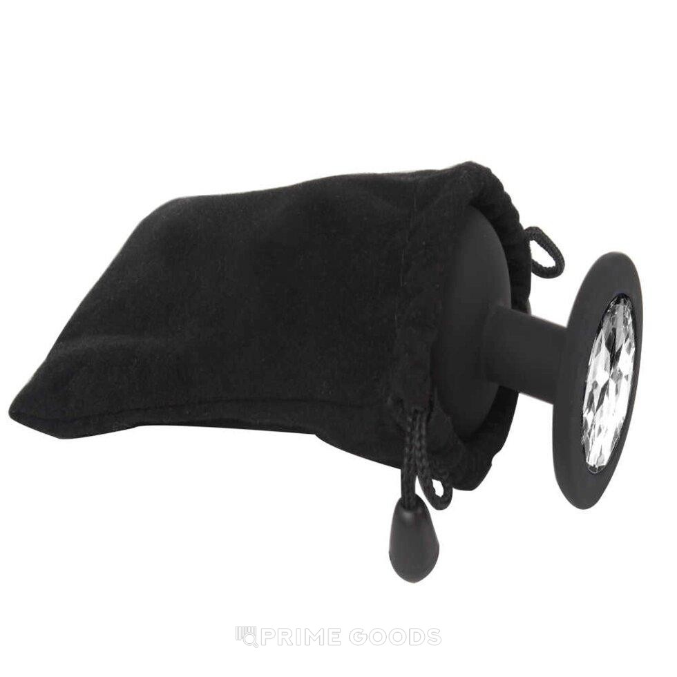 Анальная пробка с белым кристаллом (размер M, черный)