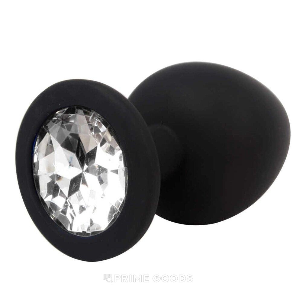 Анальная пробка с белым кристаллом (размер S, черный)