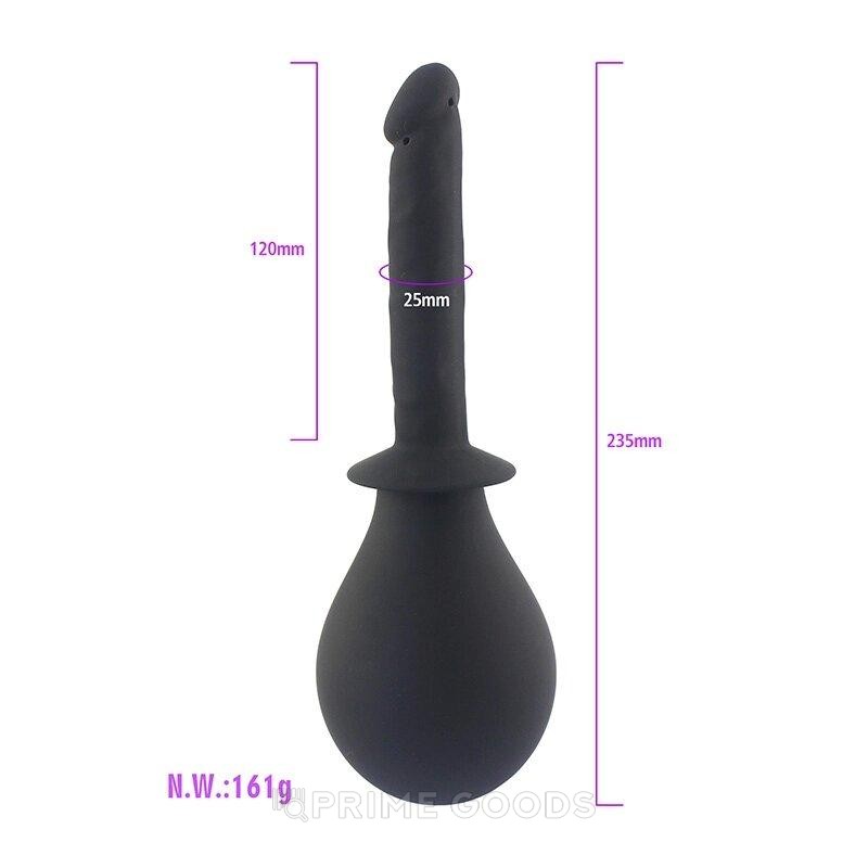Носик душа выполнен в виде головки полового члена, который оказывает дополнительную стимуляцию при введении. Оптимальный объём резиновой груши позволяет пройти процедуру за несколько раз использования. Выполнен из медицинского силикона, не вызывая раздражения. Не рекомендуется добавлять в воду спиртосодержащие средства. В целях ароматизации лучше использовать специальные лубриканты. Не хранить в местах прямого попадания солнечных лучей.