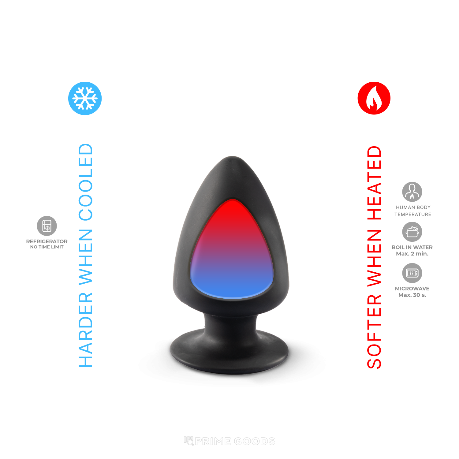 Выполнен аксессуар из смеси гипоаллергенных силекспана и силикона в черном цвете. Обладает двойной плотностью, наполненной упругим, эластичным и гибким материалом. Главным его преимуществом является термореактивность, благодаря которой вы можете получить разные ощущения. Например, если вам хочется теплого и чувственного наслаждения, вы можете нагреть его в микроволновке или горячей воде до 30 секунд. Если же желаете более твердого и жесткого опыта, остудите его в морозильнике. За счет зауженного кончика введения будут максимально деликатными, способствующими постепенному расширению, а впоследствии и неповторимому блаженству.