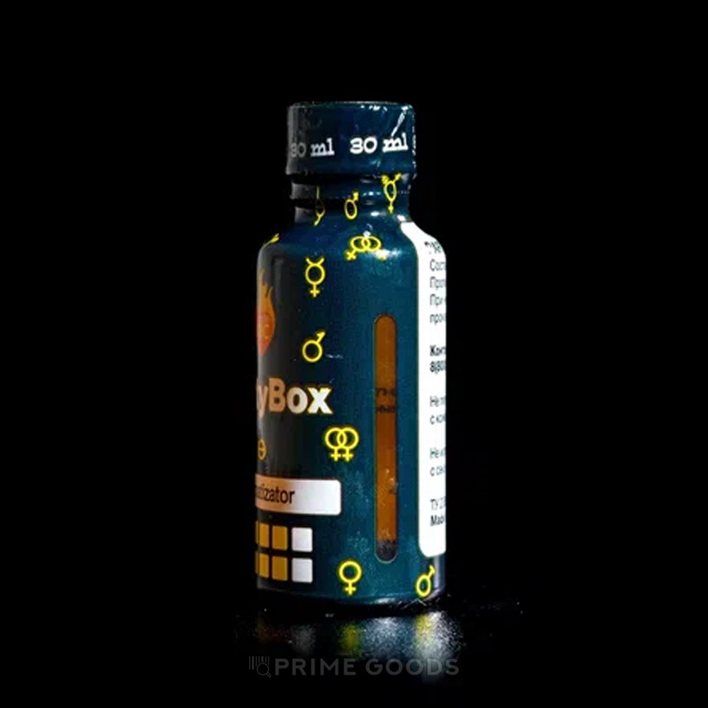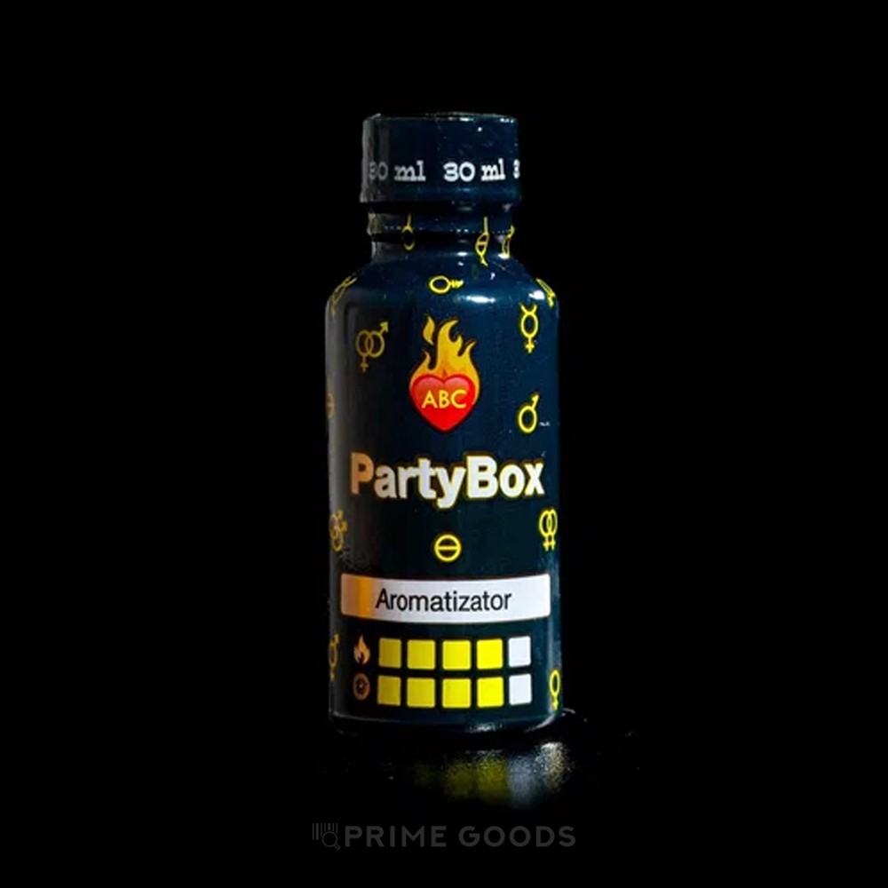 Попперс Party Box — летучее ароматическое вещество для ингаляционного применения во флаконе объёмом 30 мл. Продукт относится к категории попперсов и используется путём вдыхания паров в хорошо проветриваемом помещении с соблюдением мер предосторожности. Обладает плавным и одновременно мощным действием. Эффект проявляется практически моментально — в течение нескольких секунд после первого вдоха — и длится от 3 до 5 минут. Формула сочетает разные типы нитритов, что обеспечивает сбалансированное воздействие: выраженный эффект и умеренную продолжительность. Объём 30 мл рассчитан на многократное применение. Формат удобен для хранения и дозированного использования. Продукт применяется исключительно по назначению и не предназначен для приёма внутрь. Использование допускается только совершеннолетними. После применения запрещено управление транспортными средствами. Допускаются различные способы применения: ингаляция паров на расстоянии, использование специальных аксессуаров для попперсов, а также испарение продукта в помещении. Независимо от выбранного способа необходимо избегать прямого контакта жидкости с кожей и слизистыми оболочками.
