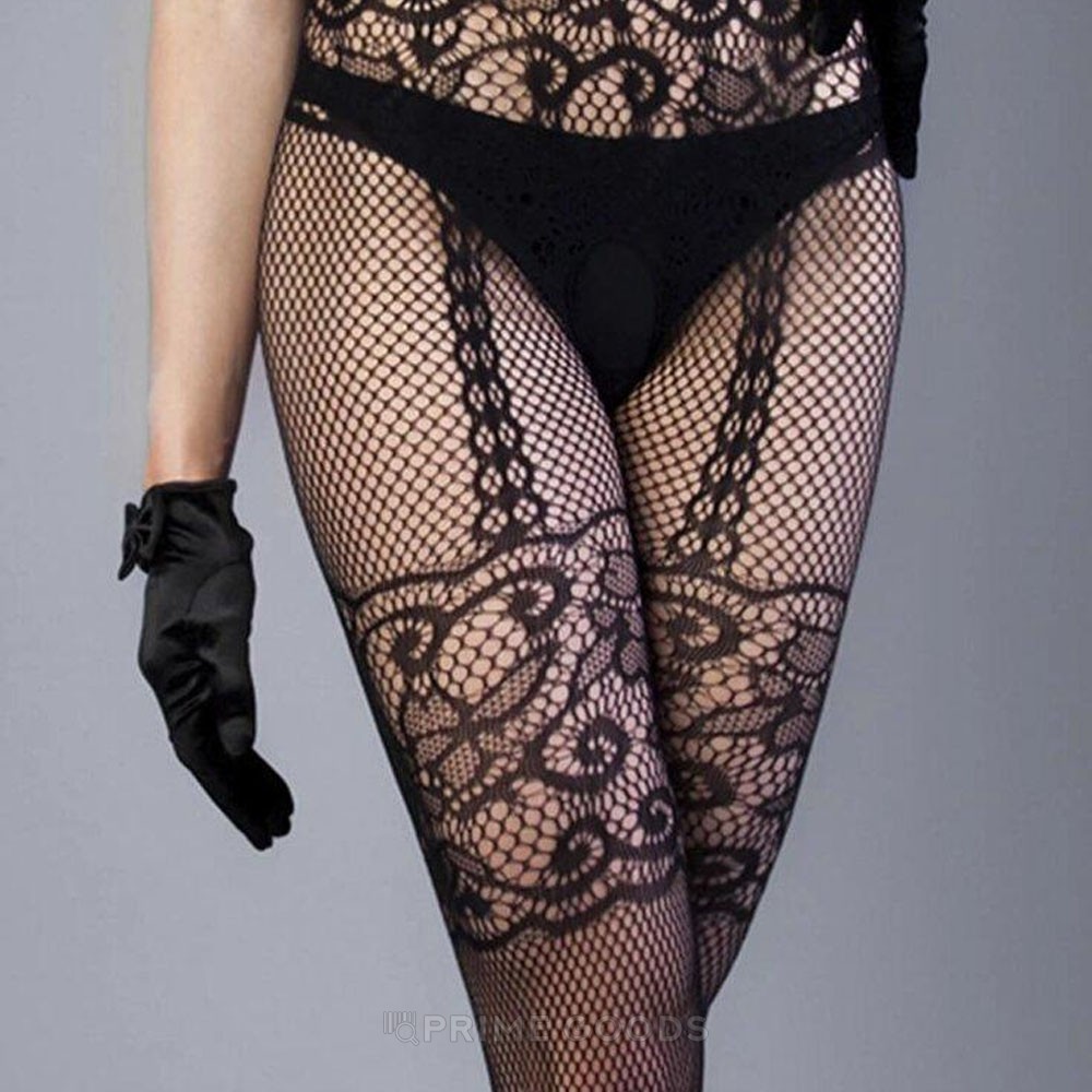 Декор с имитацией подвязок визуально удлиняет фигуру и добавляет образу игривости. Эластичный материал обеспечивает комфорт и свободу движений, а открытый доступ превращает комбинезон в идеальный спутник для ночи, полной страсти и романтических моментов.