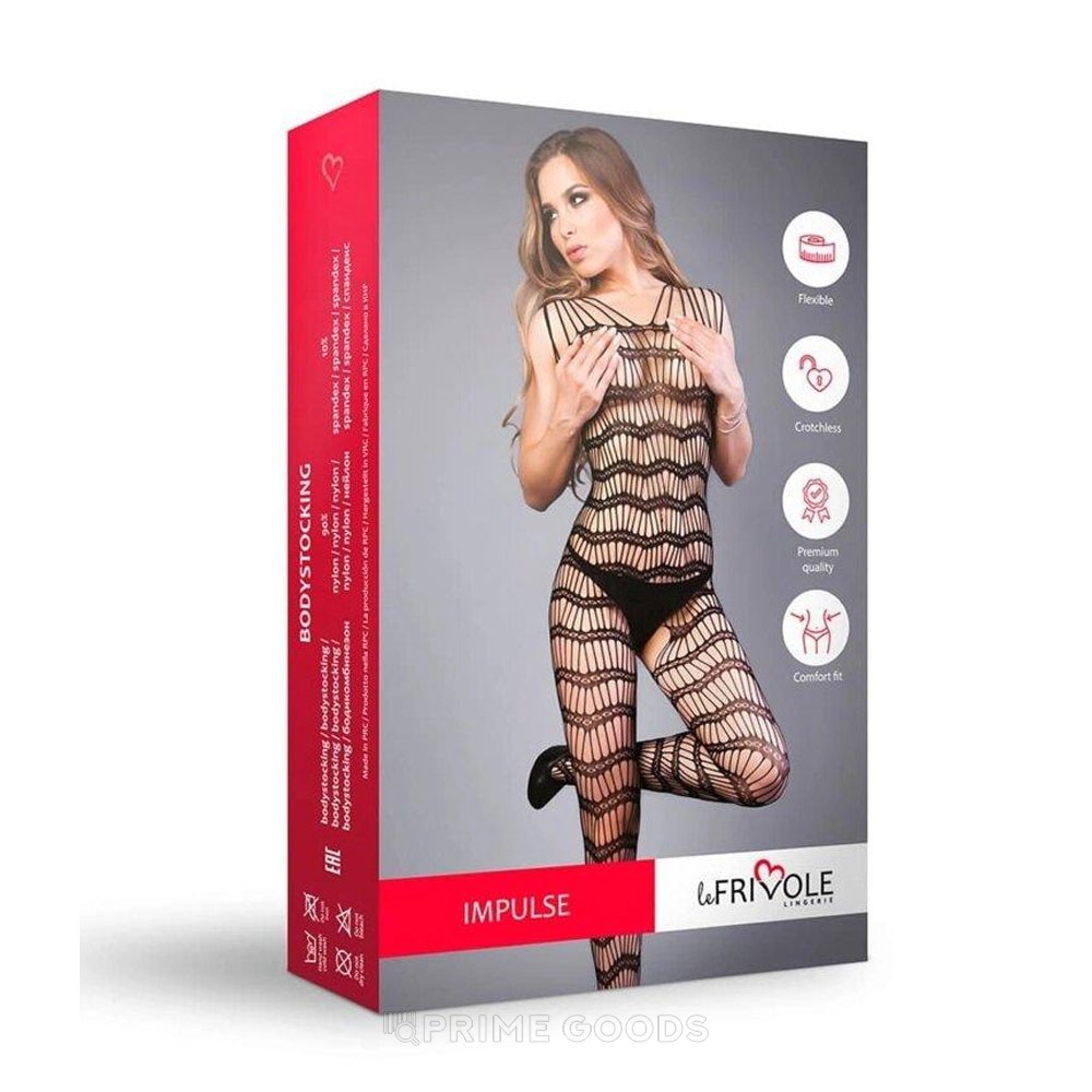 Боди-комбинезон Impulse в чёрном цвете с горизонтальными полосками создан для смелых женщин, которые хотят пробудить страсть и стать центром внимания. Модель подчёркивает силуэт, играя с просвечивающейся кожей под полосками, и создаёт эффектный эротический образ, который невозможно игнорировать.