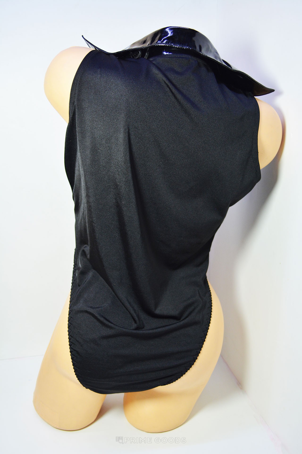 Боди с глубоким декольте и эффектом латекса поразит вашего партнера! Ведь в таком наряде вы будете повеливать и доминироаать! Спереди боди, на декольте должна быть шнуровка, но данный экземпляр поступил без завязок. На внешнй вид отсутствие шнуровки не влияет, а наоборот делает его более откровенным и накаляющим обстановку! Идеально подойдет для эротических игр или GO-GO танцев.