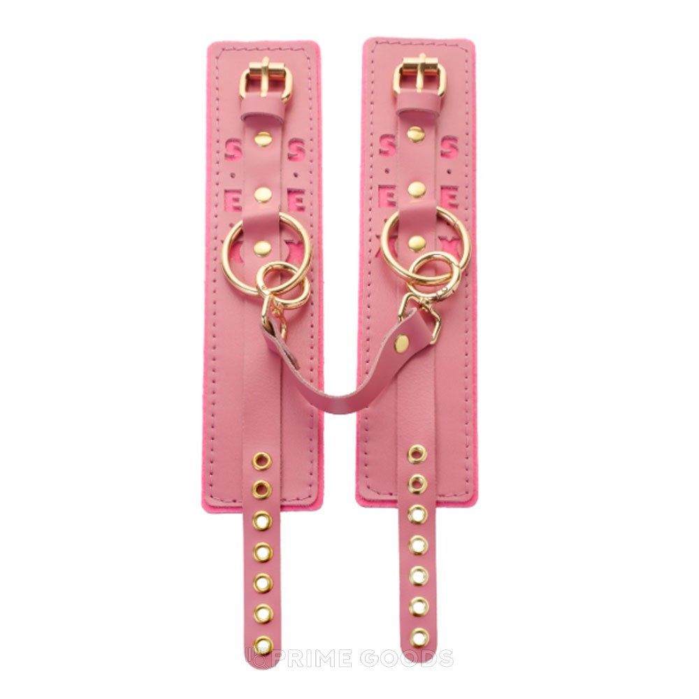 Розовые кожаные оковы с надписью «SEX» — символ дерзости и страсти. Внутренняя сторона, мягкий фетр, нежно касается кожи, даря комфорт при каждом движении. Надежная стальная фурнитура с золотистым покрытием придаёт аксессуару прочность и элегантность, а кожаный соединитель с двумя карабинами превращает оковы в универсальный инструмент для любых игр.