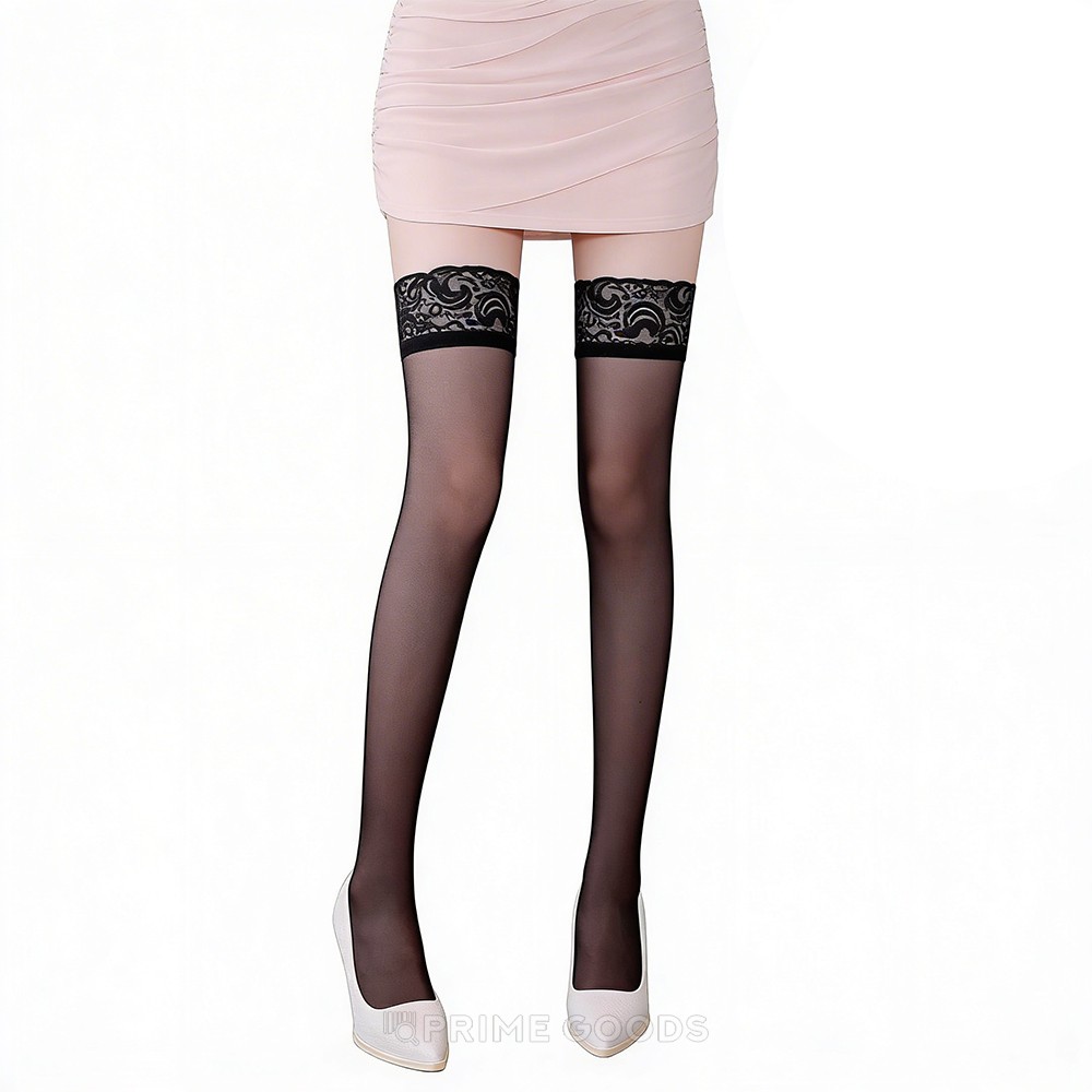 Лаконичные и изысканные чулки в глубоком черном оттенке станут эффектным акцентом в вашем гардеробе. Модель выполнена с аккуратной гладкой резинкой с ажурным оформлением, которая надежно удерживает чулки на ноге и придаёт образу нотку утончённой женственности.