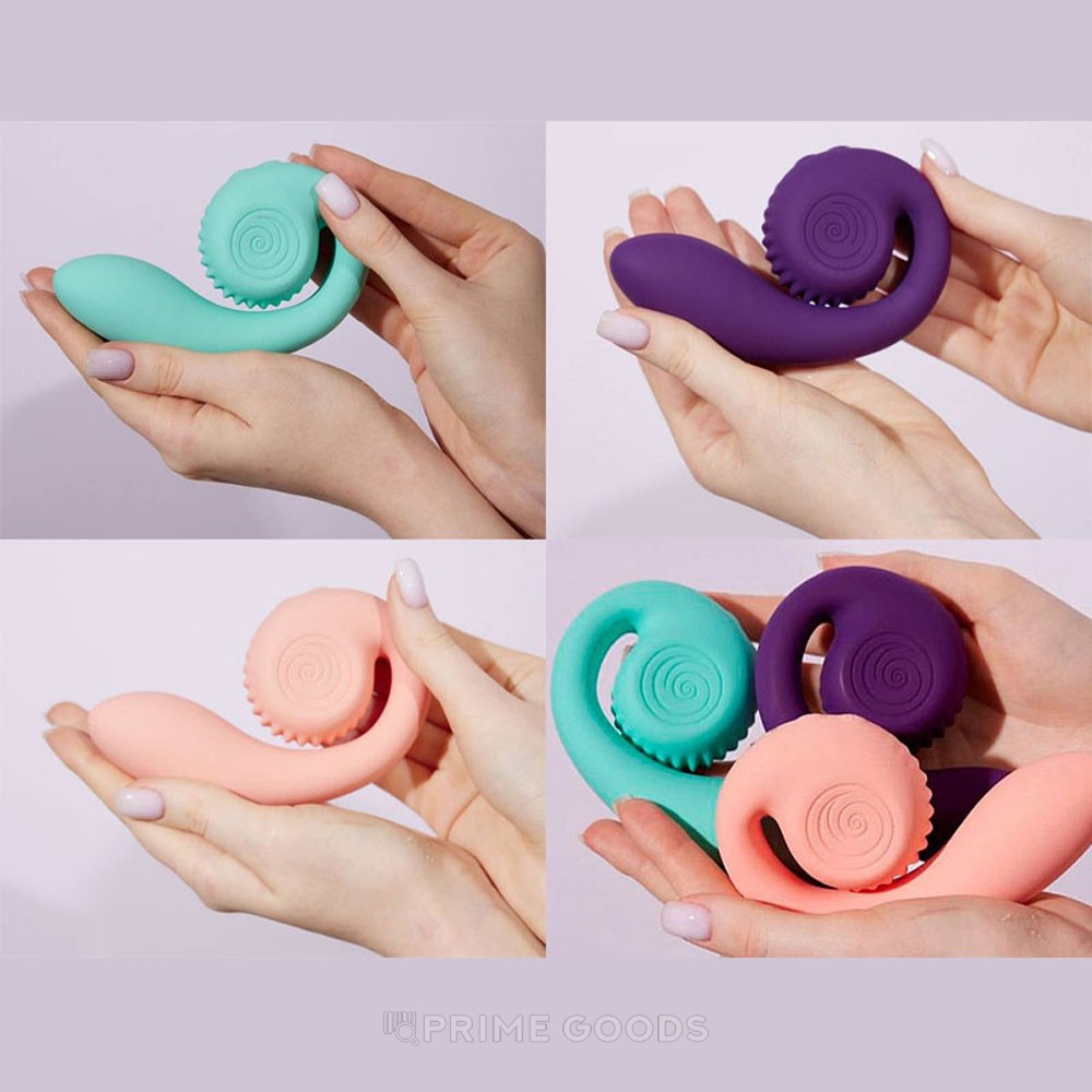 SVibe Snail GIZI - компактное устройство с двойной системой воздействия, созданное с учётом анатомических особенностей. Модель сочетает внутреннее и внешнее воздействие, при этом сохраняет стабильное положение за счёт продуманной формы и гибкой конструкции.