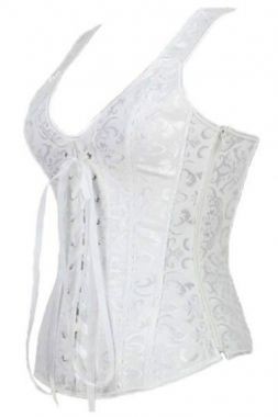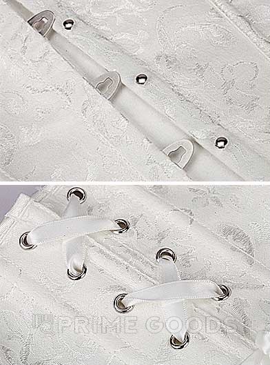 Белый корсет идеально подойдёт для вечернего и повседневного наряда. С первого взгляда можно сказать что это топ, за счёт широких лямок, но отличие в том что такой корсет отлично фиксирует талию и приподнимает грудь, делая красивую форму. Выполнен из белого атласа с изящными узорами. Спереди и сзади регулируется шнуровкой. А для того, чтобы корсет точно не обошли вниманием, дополните образ, удлиняющими ножки эротическими чулочками, и озорными перчатками.