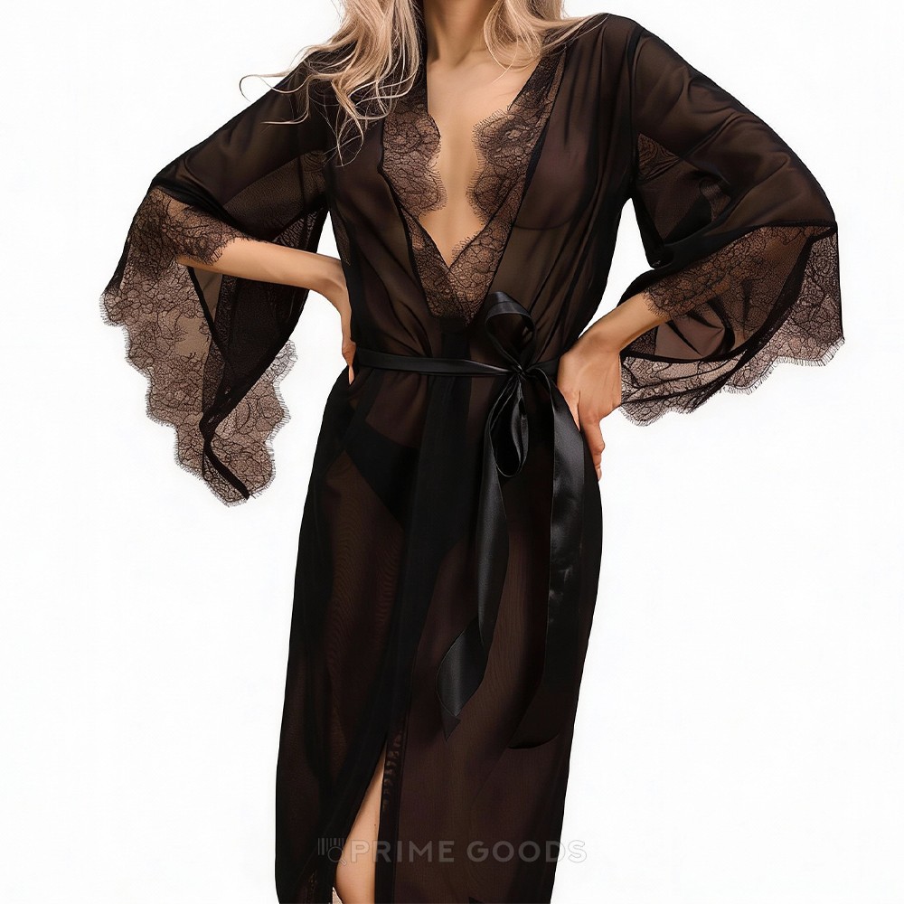 Для первого же - это идеальный вариант, потому как у вас будет мощное оружие против мужской стойкости. Прозрачная черная сетка поиграет с его выдержкой, ведь ваше тело покрыто нежной вуалью, интригующей сознание. Расклешенные рукава подчеркнут изящность тонких запястий, а кружевная отделка сделает образ богатым и благородным.