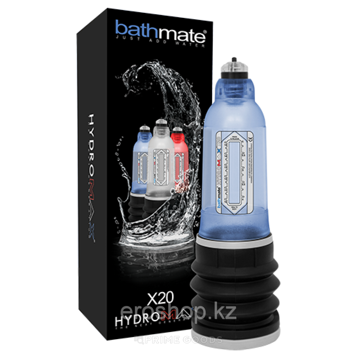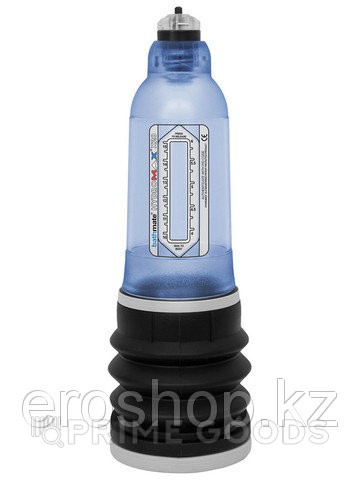 Гидропомпа Hydromax X20 синяя Данная модель подходит для пениса длиной от 7,5 до 12,5 см. и толщиной до 4,5 см. в диаметре. Bathmate Hydromax X20 укомплектована более надежным клапаном и мягкой съемной прокладкой для самого комфортного использования. Её можно использовать для увеличения размера пениса самостоятельно, либо в дополнение к экстендеру, для улучшения результата от занятий. Используя гидропомпу совместно с экстендером, вы стимулируете более активный рост тканей пениса двойной нагрузкой различных видов: экстендер работает на общий рост пениса за счет растяжения тканей, а гидропомпа дополнительно стимулирует активный рост в толщину, дополняя действие экстендера. Разнообразная нагрузка делает занятия более результативными, чем однотипная, ускоряя рост.