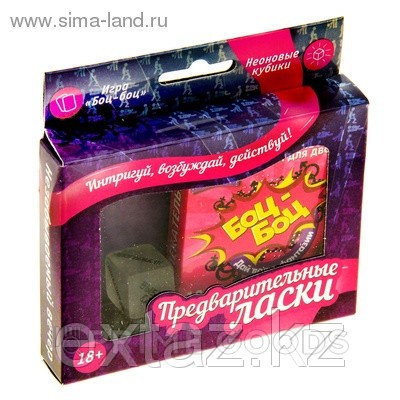 Для начала, чтобы раззадорить чувства, мы предлагаем вам сыграть неоновыми кубиками, каждая грань которого – целое открытие в мире поцелуев. А то, что кубики светятся в темноте, придаст вашей ночи больше огня. А когда вы разогрелись и готовы к более страстным эмоциям, мы предлагаем вам сыграть в игру “Боц-боц”. В ней вы найдете 28 карточек с изображением лучших поз для занятий сексом, ищите совпадения и наслаждайтесь друг другом.