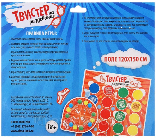 Эта напольная возбуждающе-сближающая игра станет пикантным продолжением Вашей вечеринки. “Бутылочка” – это прошлый век, будущее за новым “Твистером на раздевание”! Удобный и экологичный материал (текстиль) позволит Вам без опаски взять его с собой куда угодно, а затем легко постирать в машине!
