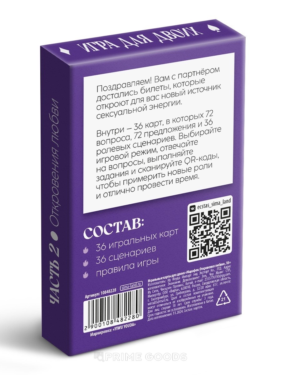 Игральные карты для пар «Марафон. Откровения любви», 36 карт, 18+