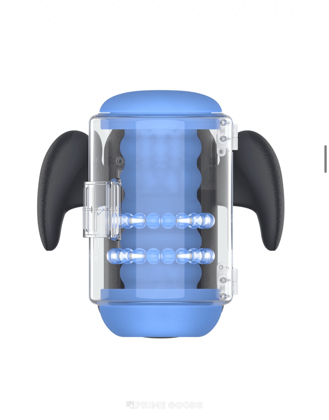 Мастурбатор оснащён мягким 3D TPE-рукавом, менее пористым по структуре, что дарит более реалистичное тактильное ощущение. Восемь режимов толчков и дополнительная стимуляция движущимися бусинами воздействуют на всю поверхность пениса, усиливая удовольствие. Удобные боковые ручки и встроенный магнитный держатель для телефона позволяют полностью сосредоточиться на процессе.