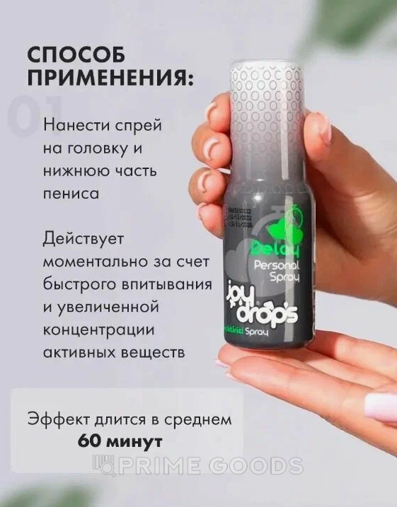 Применение: распылите спрей (2-3 раза) на всю поверхность полового члена за 10-15 минут до секса, дождитесь полного впитывания.