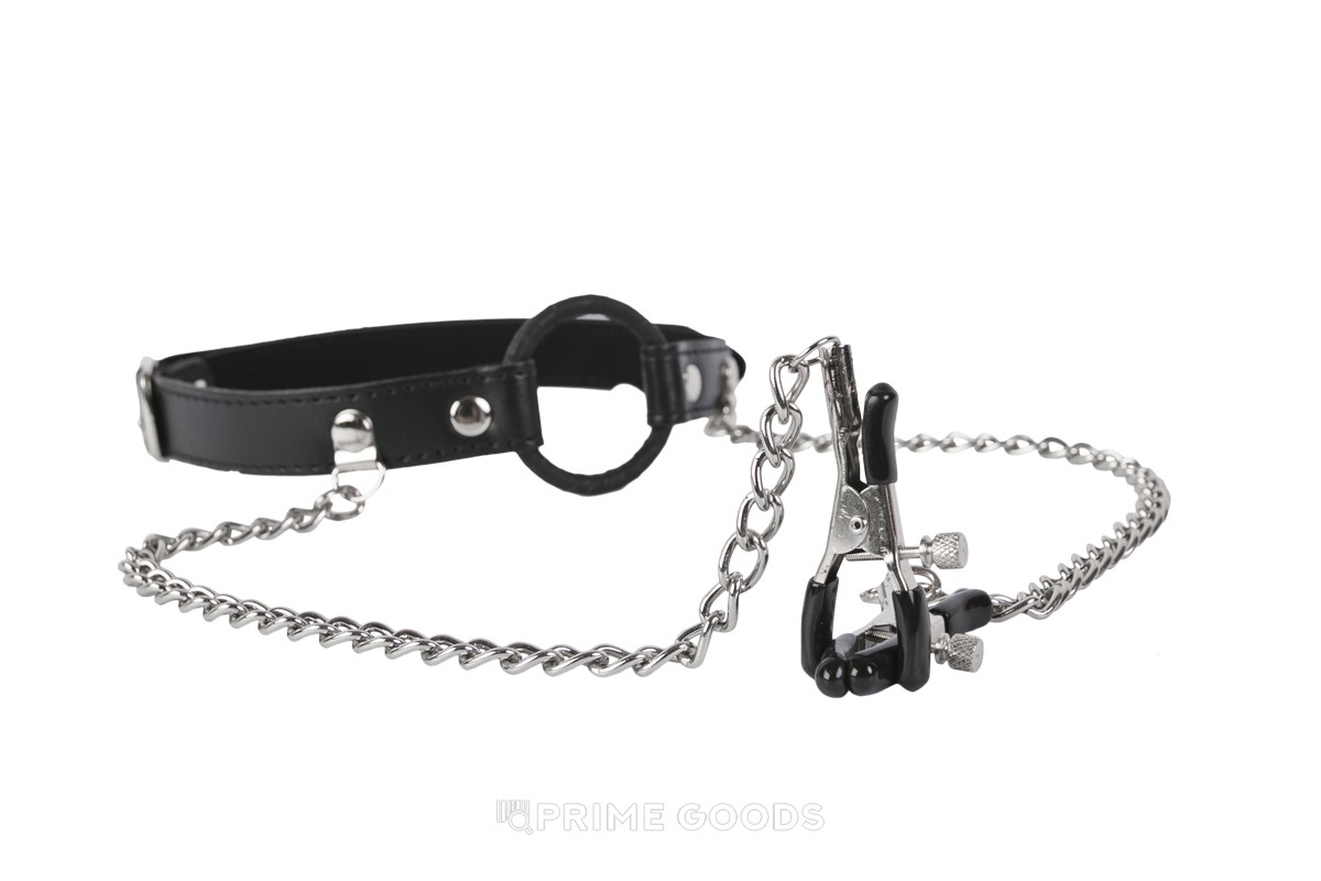 К расширителю цепочками крепятся зажимы для сосков, которые будут усиливать ваши ощущения каждый раз, когда вы повернете голову или откинете её назад. Сила зажима регулируется винтами.