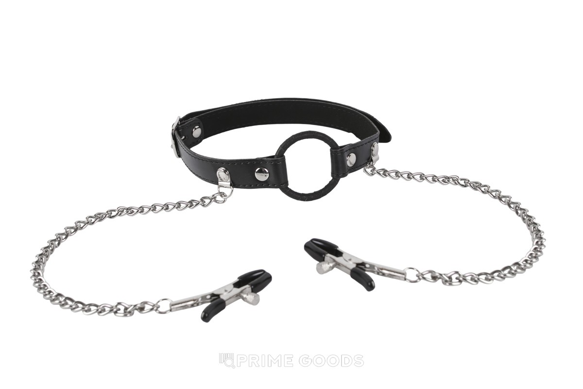 Кляп с зажимами для сосков Черный