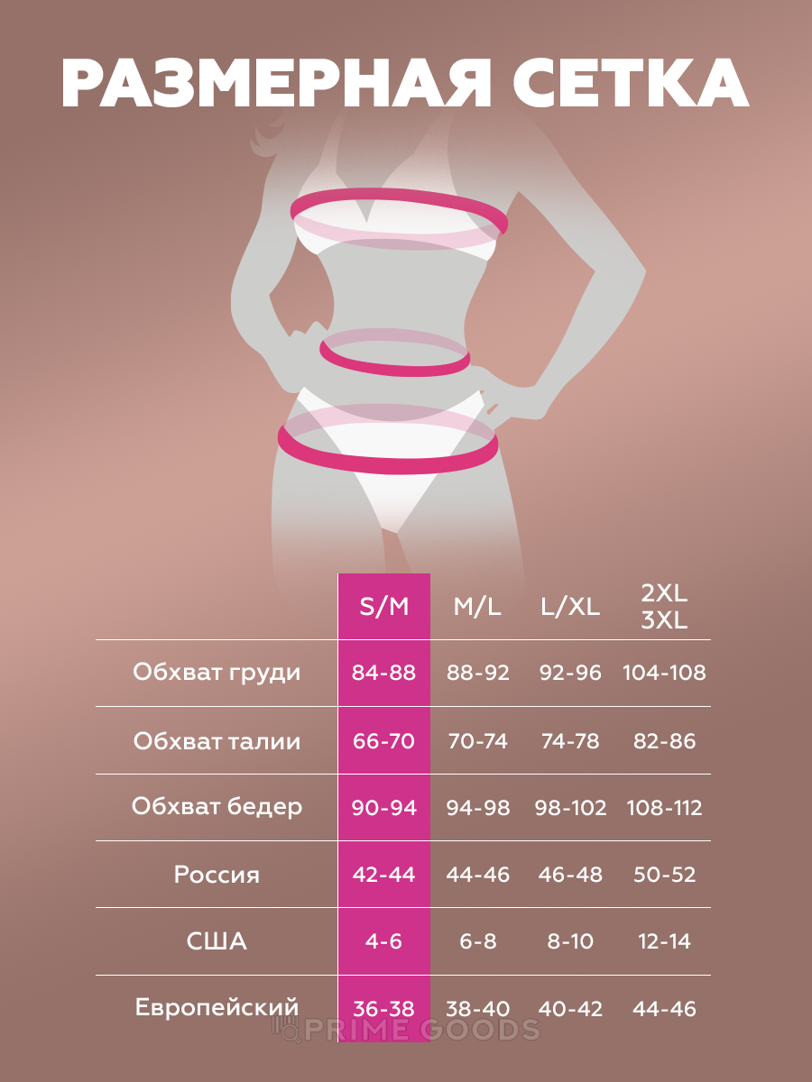 Бюстгалтер и трусики исполнены в виде крупных кружевных узоров, а эластичные ленты контурируют грудь и нижнюю часть тела, создавая эффектный вид. Подчеркните свои изгибы и займитесь соблазнением вашего мужчины, ведь при одном только взгляде на вас, его разум и тело будут взбудоражены до предела.