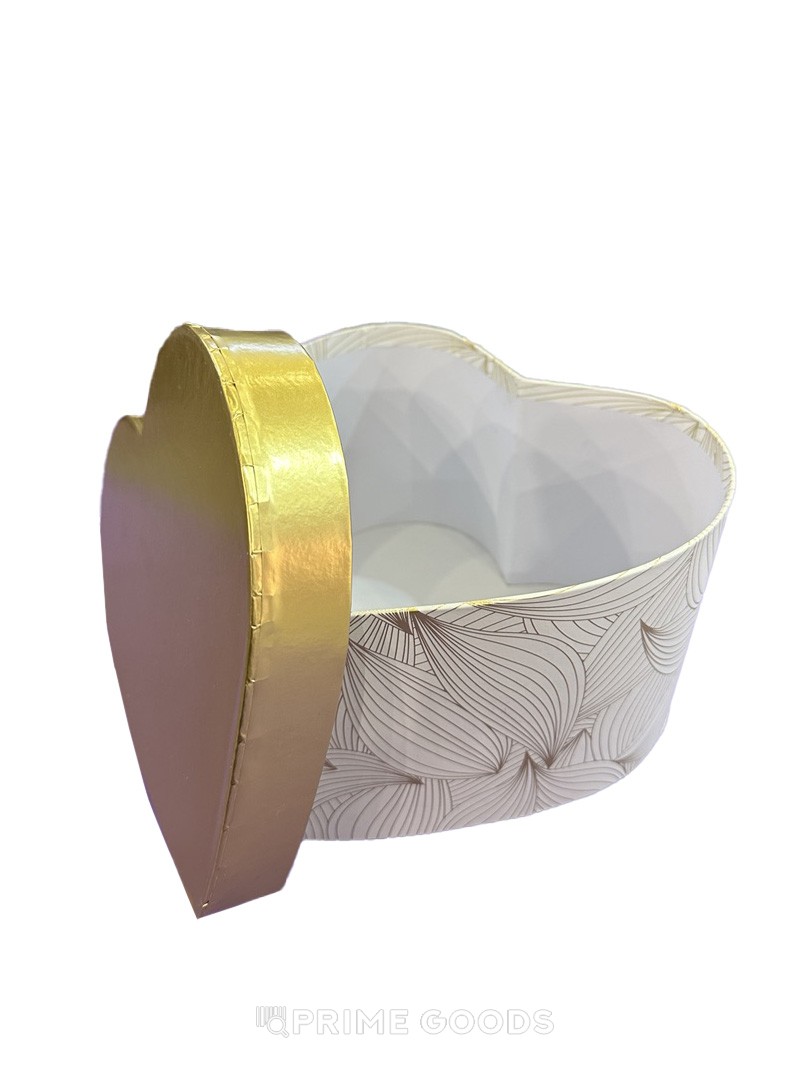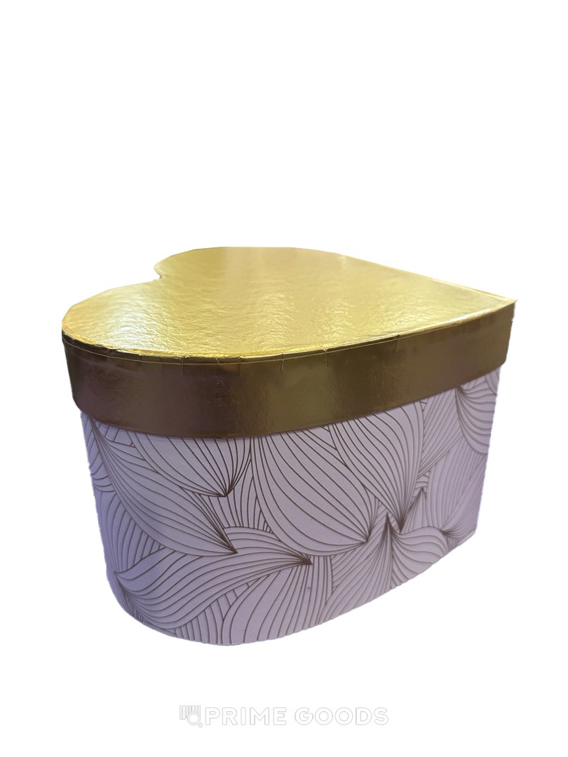- Элегантный дизайн. Изысканная форма сердца в сочетании с бежевым цветом и золотой крышкой делает коробку стильным элементом любого подарка.