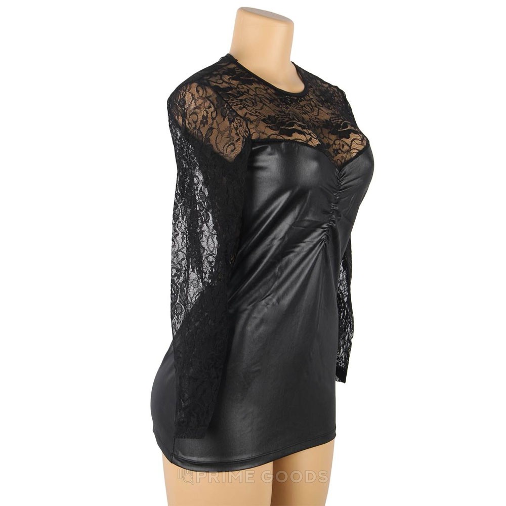 Кожаное платье с кружевной отделкой Ohyeah Sexy lace +стринги, L