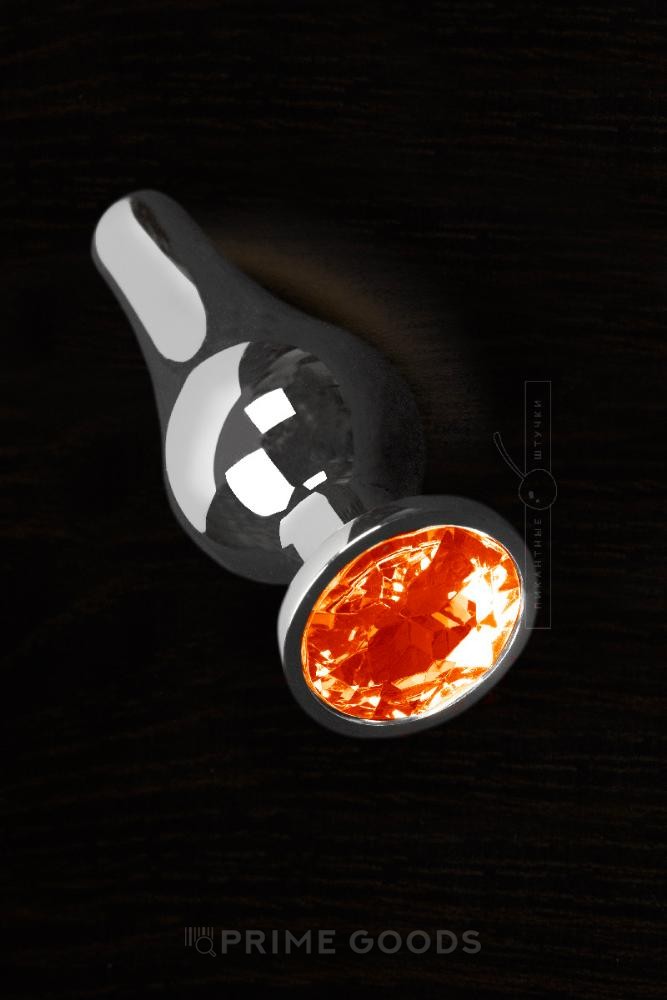 Маленькая анальная пробка с удлиненным кончиком и оранжевым кристаллом. Благодаря своей анатомической форме, именно узкому длинному кончику, игрушка легко проникает внутрь, не причиняя болезненных ощущений. Гипоаллергенный, гигиеничный материал - металл. Он не притягивает посторонние запахи, его легко мыть и даже дезинфицировать. С пробкой можно использовать любые лубриканты.