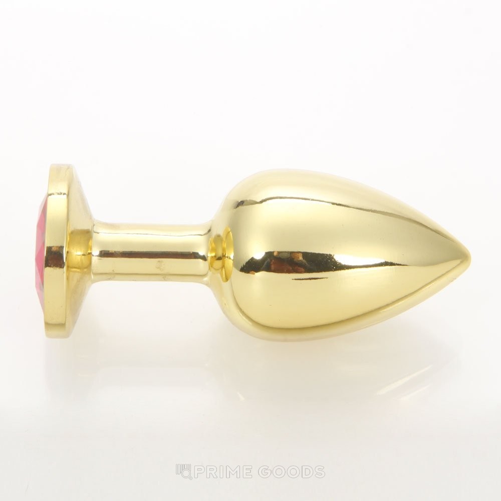 Маленькая золотистая анальная пробка с круглым кончиком и кристаллом