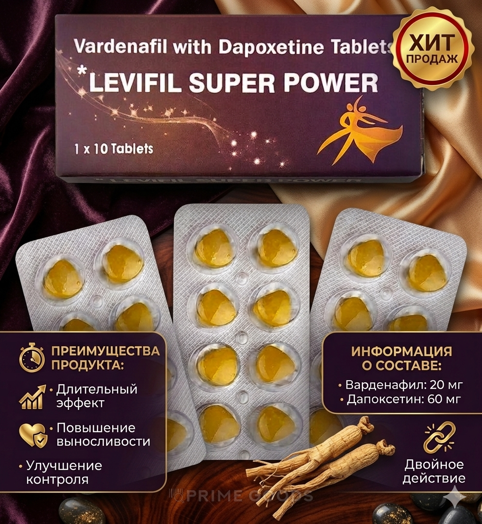 Levifil Super Power – это уникальный мужской препарат, сочетающий варденафил и дапоксетин. Эти два активных компонента эффективно стимулируют эрекцию и улучшают половую функцию. Препарат предназначен для устранения проявлений эректильной дисфункции и поддержания мужского здоровья.