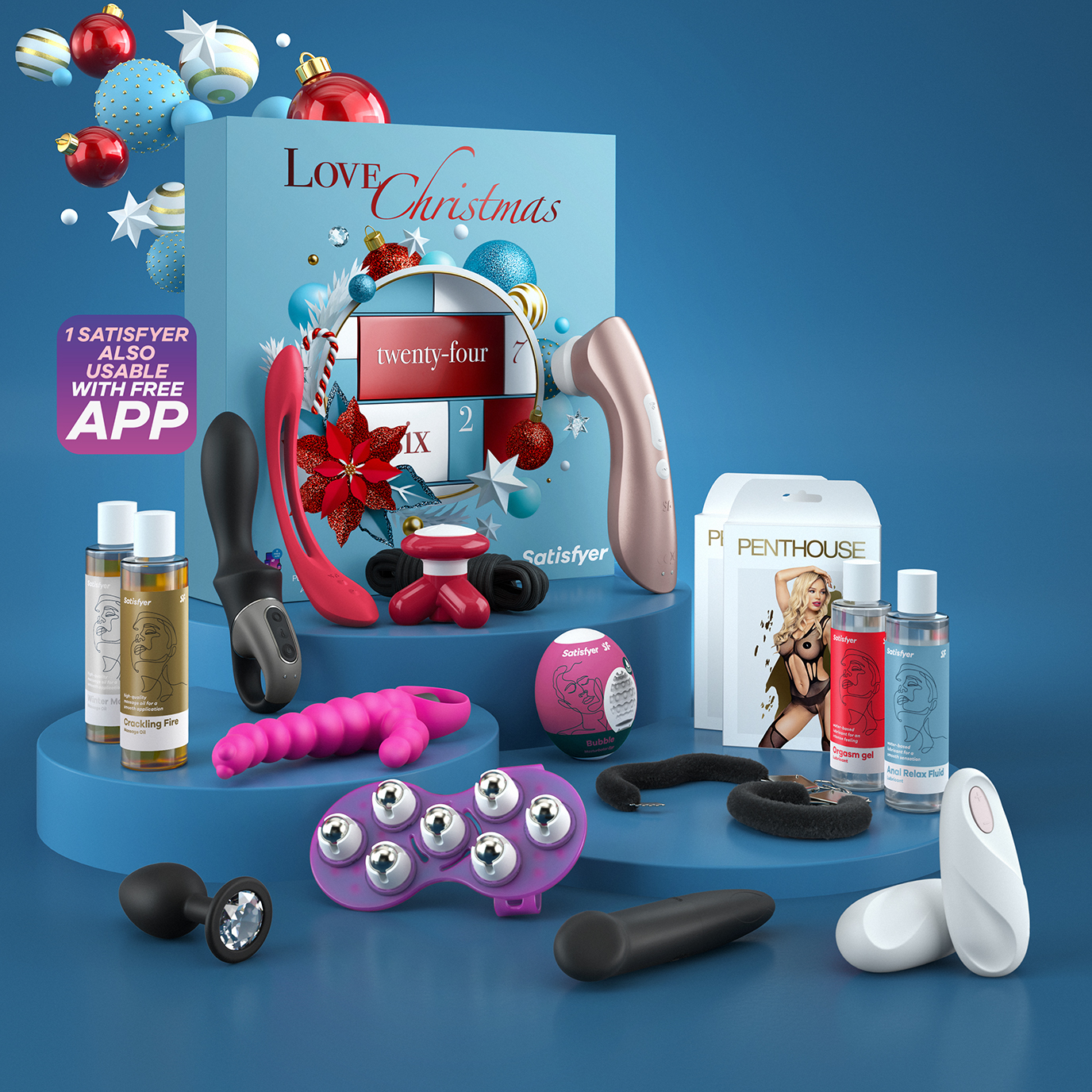 Адвент календарь от знаменитого немецкого бренда Satisfyer - это набор секс девайсов, лубрикантов, фетиш элементов и даже массажёров! В наборе есть всё, для идеального интимного времяпровождения.