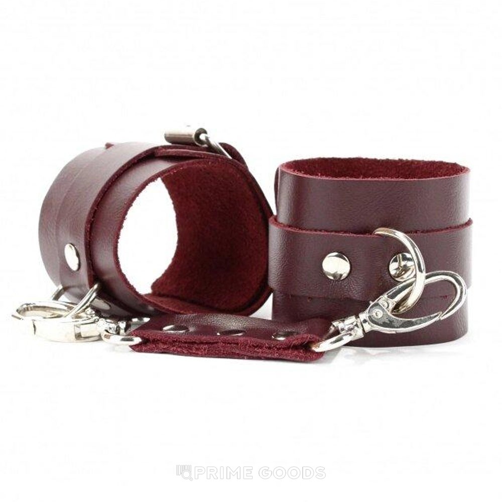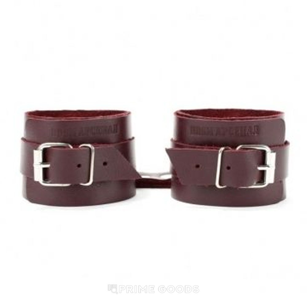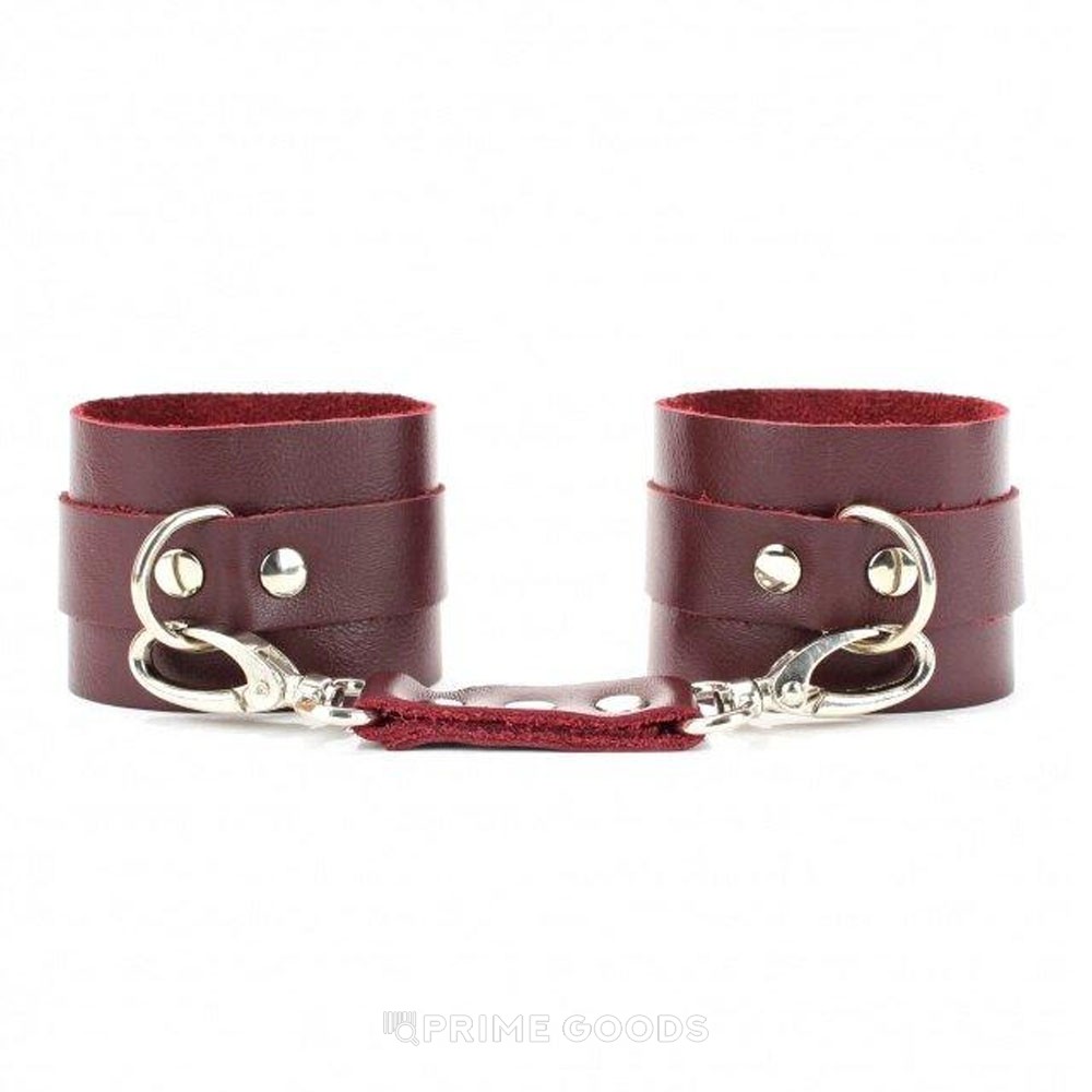Наручники кожаные бордо, регулируемые, с соединителем 15 см