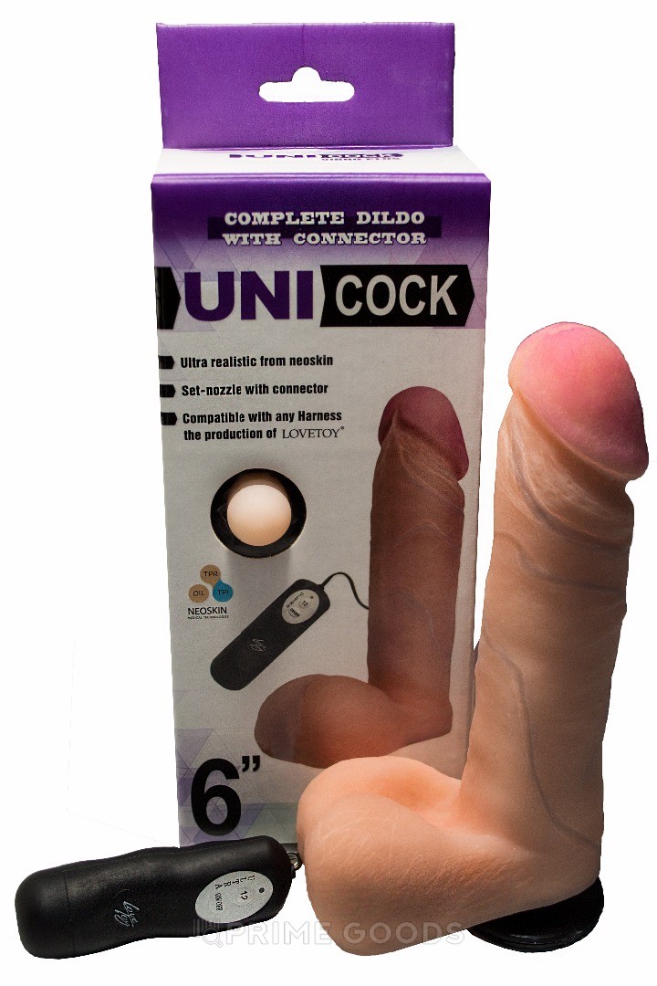 Насадка на страпон с вибрацией UNICOCK 6"d — реалистичный неоскин и 12 режимов