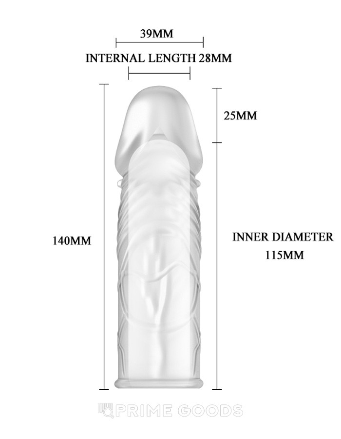 Насадка на пенис изготовлена из гипоаллергенного и эластичного материала, который мягко обхватывает пенис, повторяя его форму, как вторая кожа. Она увеличивает длину члена на 2,5 см и расширяет головку на 5%, создавая ощущение более полной наполненности и дополнительной стимуляции влагалища за счёт рельефа с венами. Насадка способствует продлению полового акта, замедляя эякуляцию, и делает секс более чувственным и насыщенным для обоих партнёров.