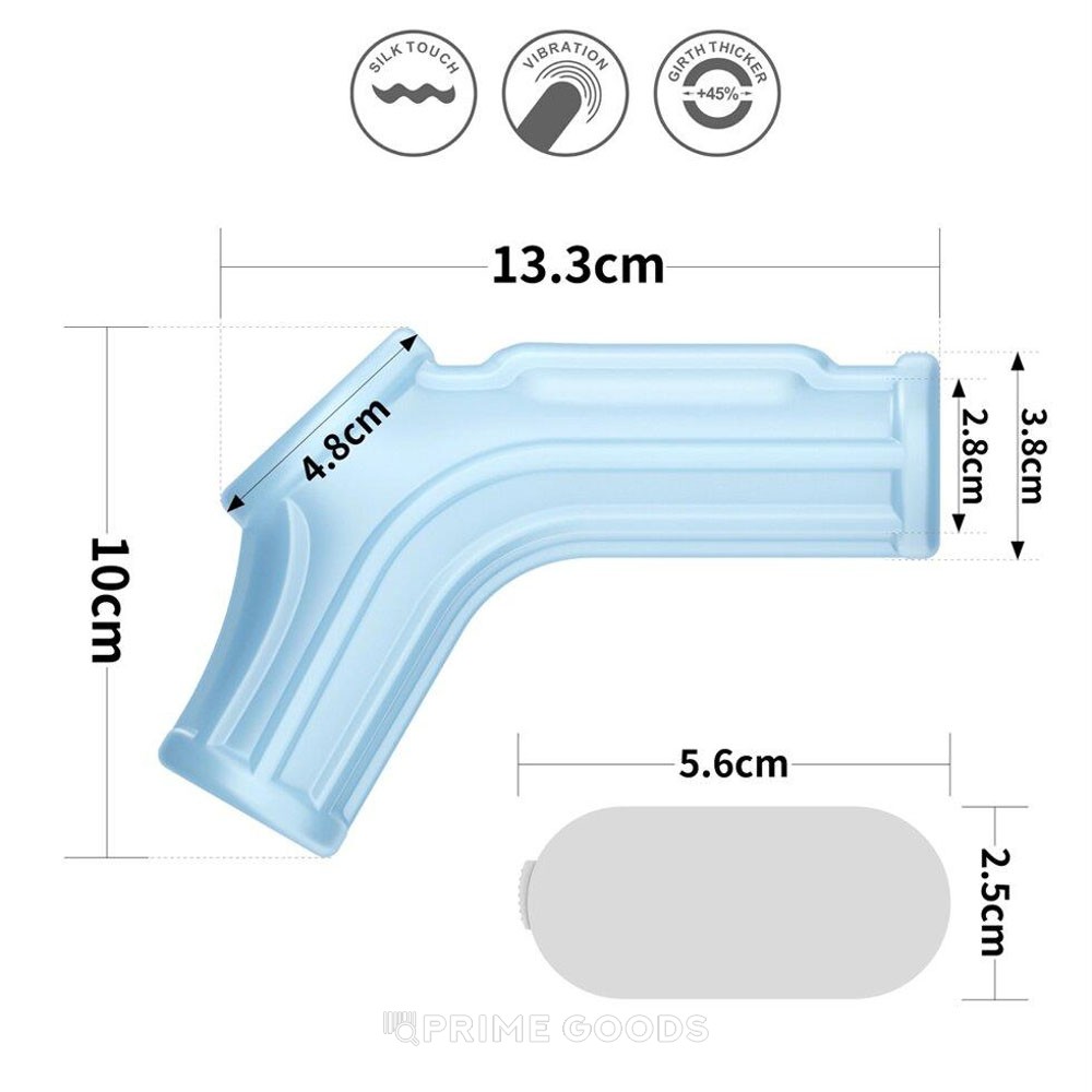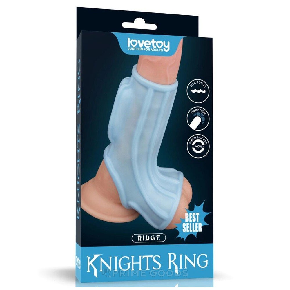Насадка на пенис с вибрацией с рукавом для мошонки Ridge Knights Ring голубая (13,3*2,8)