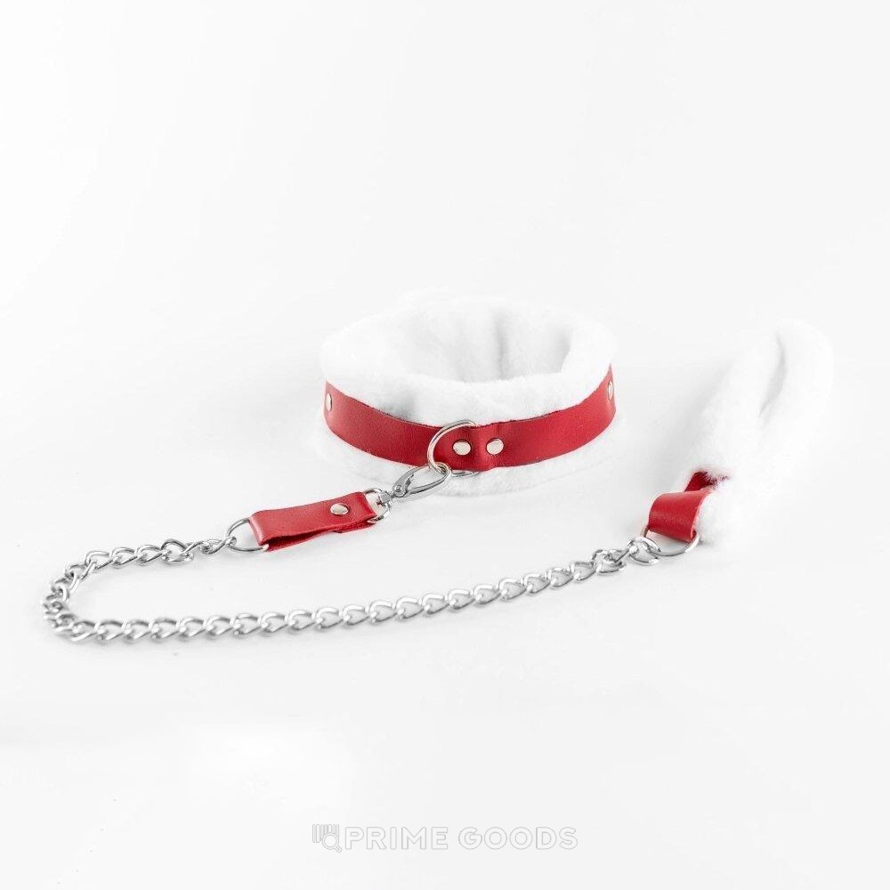 Чокер из натуральной кожи Red с нежным белым мехом и поводком — регулируемый