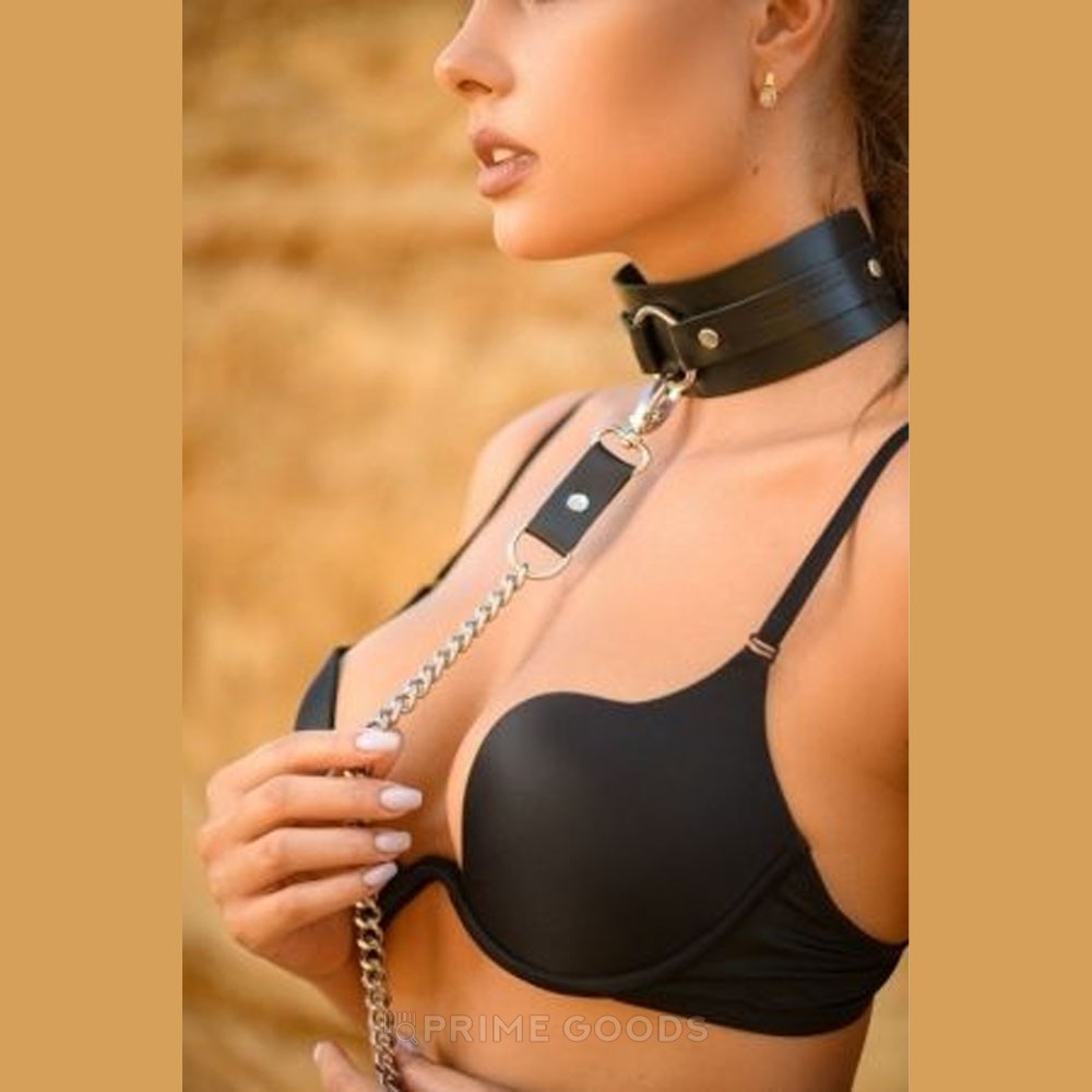 Ошейник с поводком Lady's Arsenal Black, натуральная кожа