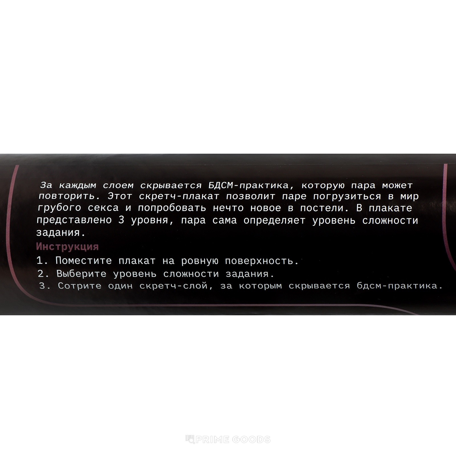 Плакат со скретч-слоем «БДСМ» — это интригующее приключение для двоих, которое открывает двери в мир страсти, подчинения и игры с властью. Он создан для пар, стремящихся к новому уровню откровенности, доверия и удовольствия.