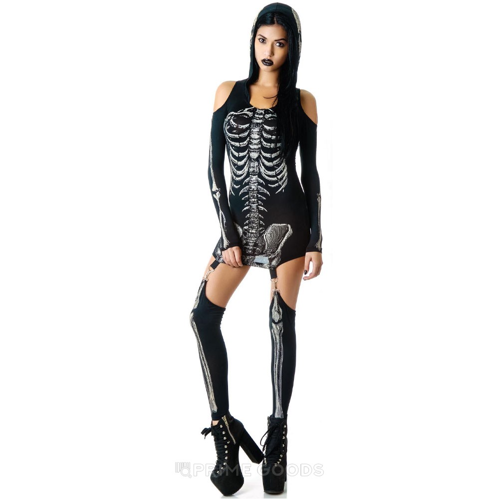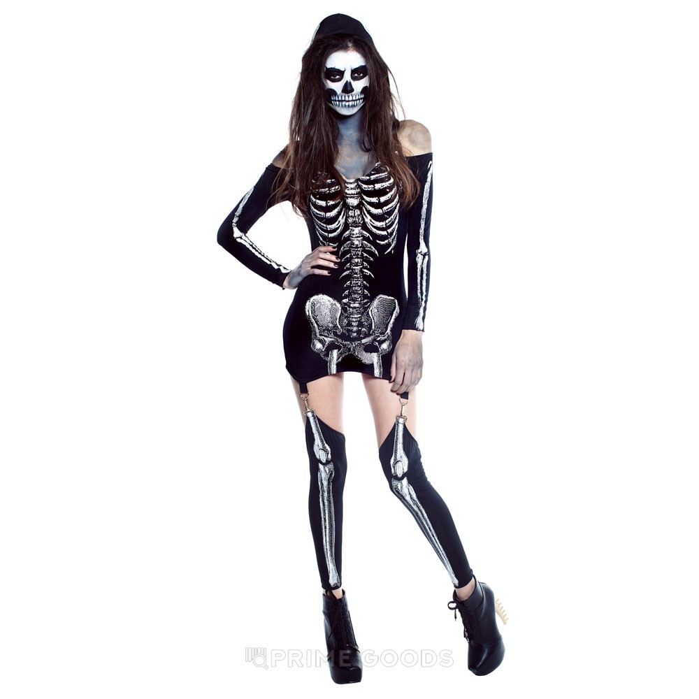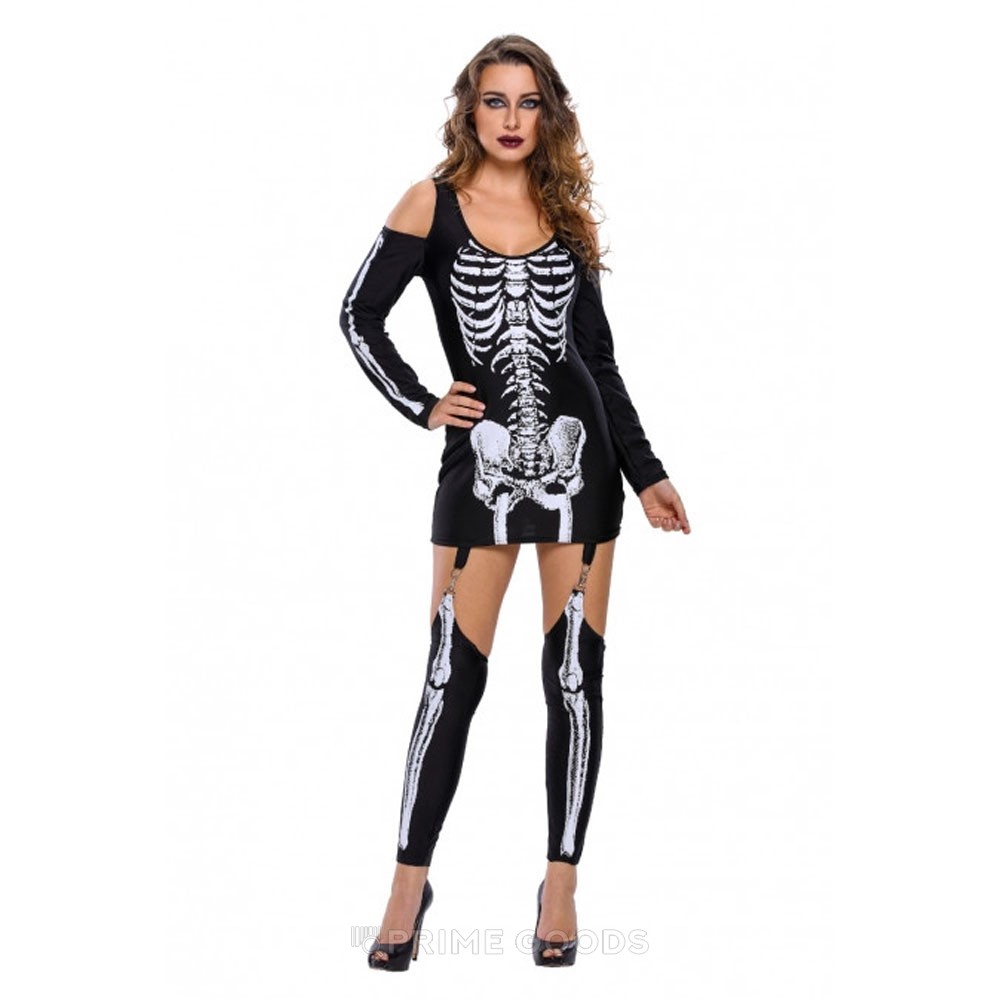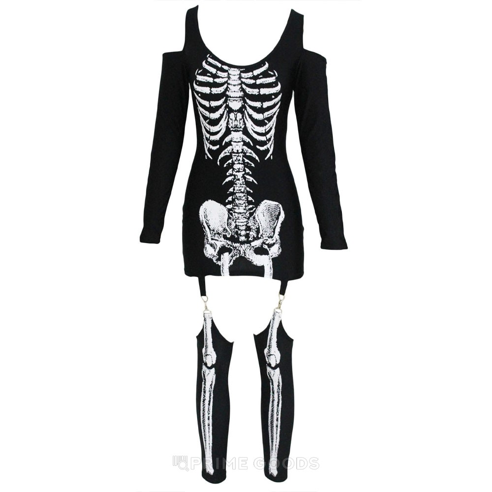 Платье на Хэллоуин «Скелет», туника с чулочками, белая/чёрная, размер S