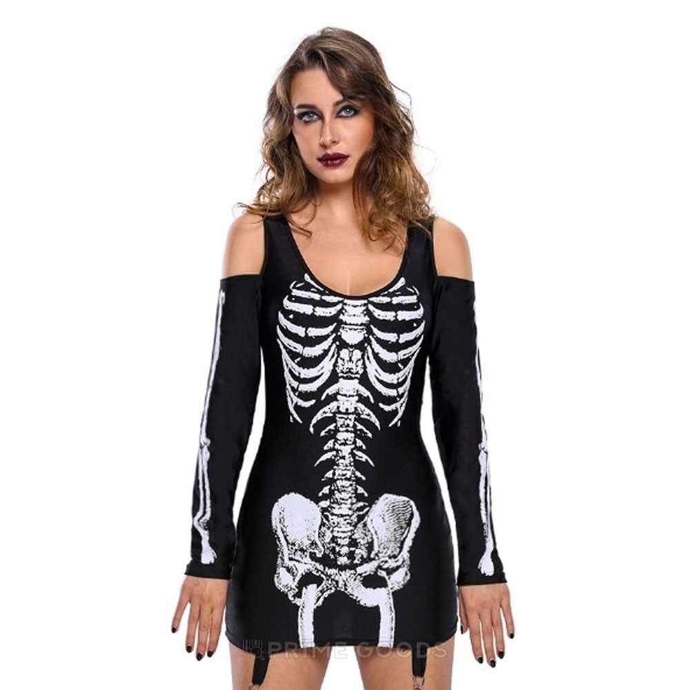 Соберите образ, который запомнится: платье-туника «Скелет» идеально подойдёт для тематических вечеринок или ролевых игр. Принт в виде скелета и стилизованные чулочки создают характерный контраст — холодный визуальный стиль с мягкой интригой. Модель подчёркивает силуэт и позволяет играть с визуальными акцентами, делая образ выразительным без явной вульгарности.