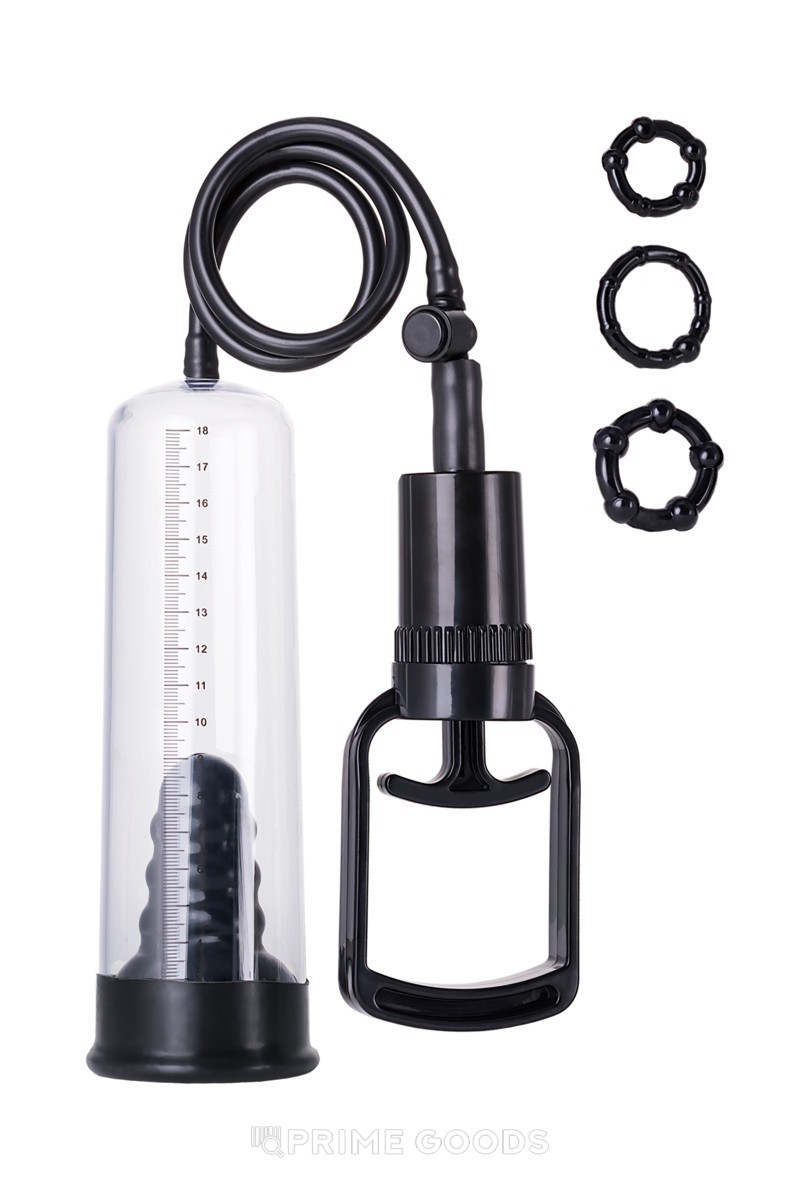 Выполнена из материала высокого качества. За счет мощного насоса и откачки воздуха образуется вакуум, благодаря которому вы сможете наблюдать изменения размера пениса. Монометр и прозрачная колба позволят видеть результаты. Также в комплекте идут 3 эрекционных кольца, способствующие продлению полового акта. Ваша избранница будет в восторге от такого количества положительных эффектов.