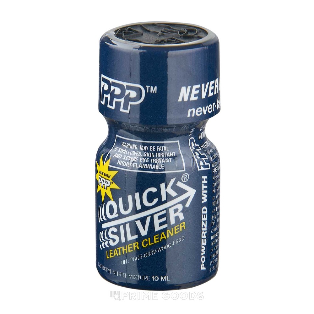 Попперс Quick Silver — летучее ароматическое вещество для ингаляционного применения во флаконе объёмом 10 мл. Продукт относится к категории попперсов и используется путём вдыхания паров в хорошо проветриваемом помещении с соблюдением мер предосторожности. Обладает средней силой действия. Эффект проявляется практически моментально — в течение нескольких секунд после первого вдоха — и носит кратковременный характер. Компактный флакон объёмом 10 мл удобен для хранения и дозированного использования. Продукт применяется исключительно по назначению и не предназначен для приёма внутрь. Использование допускается только совершеннолетними. После применения запрещено управление транспортными средствами. Не допускается сочетание с алкогольными напитками, наркотическими веществами и секс-стимуляторами. Допускаются различные способы применения: ингаляция паров на расстоянии, использование специальных аксессуаров для попперсов, а также испарение продукта в помещении. Независимо от выбранного способа необходимо избегать прямого контакта жидкости с кожей и слизистыми оболочками.