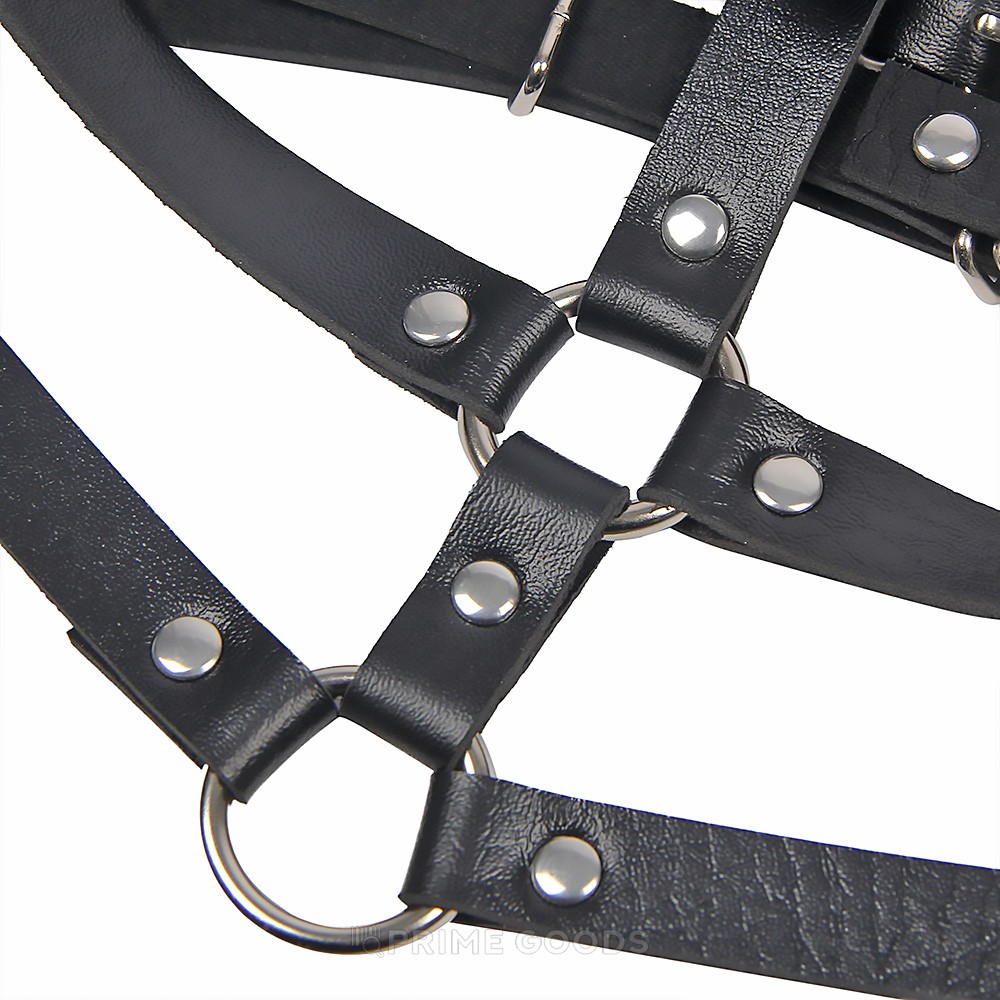 Модель изготовлена из высококачественной искусственной кожи и оснащена множеством металлических колец и заклепок, а также несколькими металлическими пряжками спереди, посередине и сзади для регулируемой посадки.
