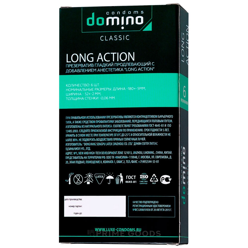 Презервативы DOMINO CLASSIC Long action, с эффектом продления, 6 шт