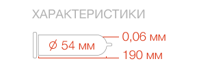 Длина презерватива подойдет на размер полового члена от 18 до 20 см, диаметр от 4, 5 до 5,5, толщина стенок 0,6 мм;